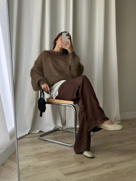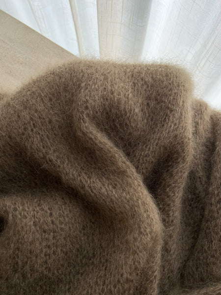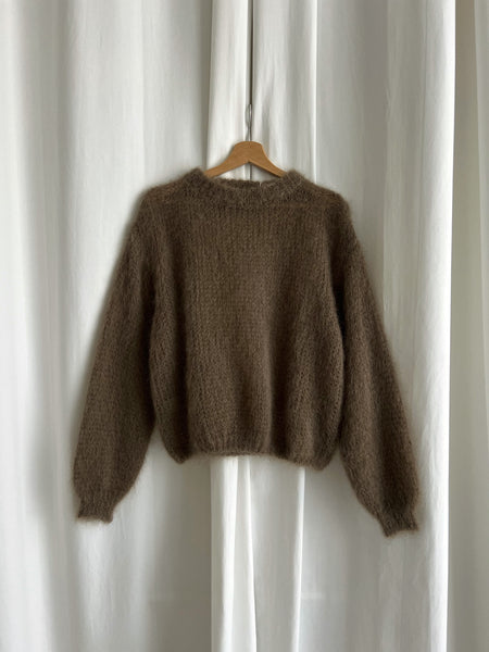 Maglione girocollo in 80% kid mohair morbidissimo, color marrone.