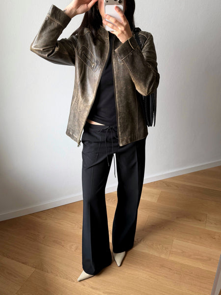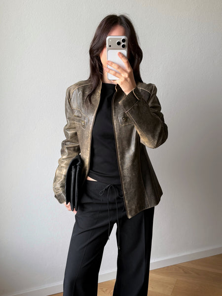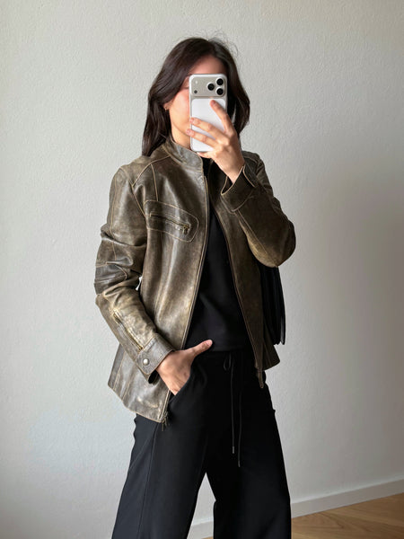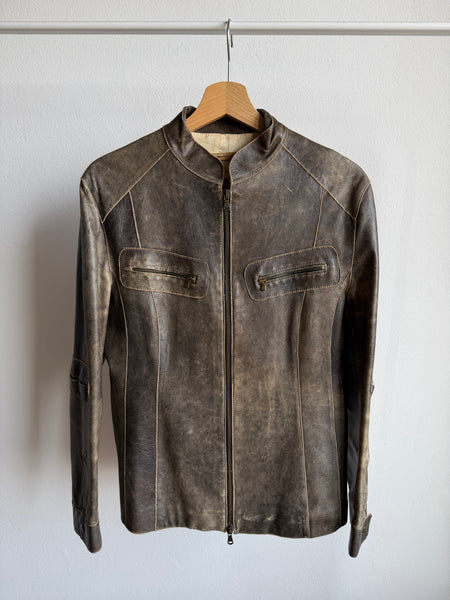 Real leather distressed biker jacket.