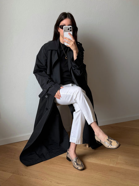 Un grande classico senza tempo, ma super attuale e di tendenza per il suo bellissimo fit ampio e super lungo. Abbottonatura doppio petto con dettagli molto belli. Made in France. Collo a rever e tasche laterali. Sfoderato quindi perfetto da usare anche sopra un blazer se piove.