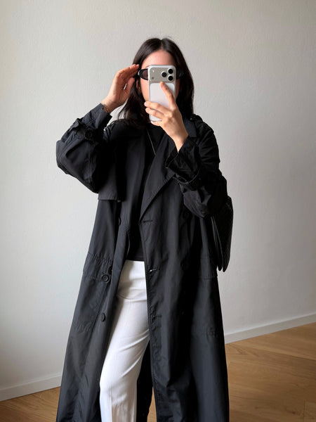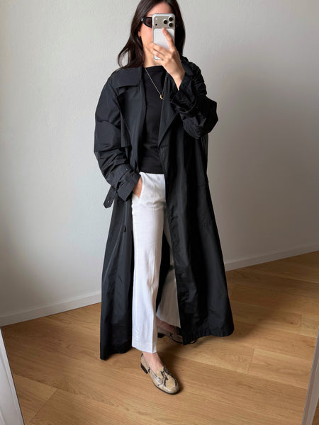 Super long black trench coat.