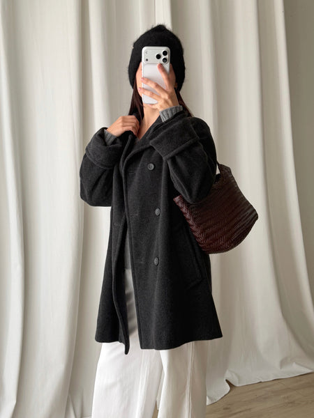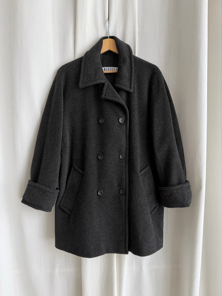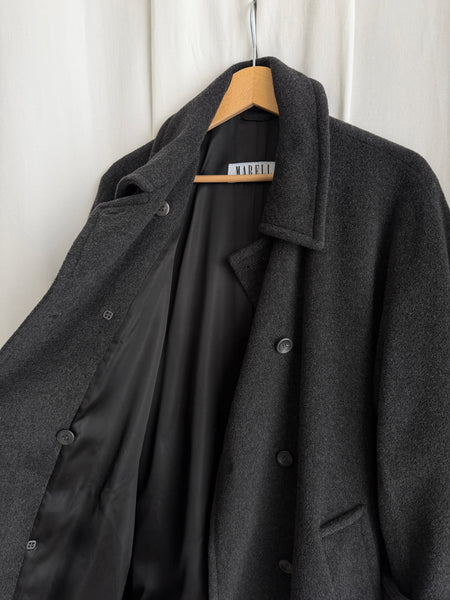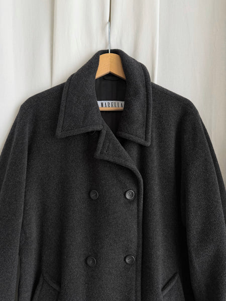 Feature: cappotto in pura lana vergine firmato Marella (gruppo MaxMara), color grigio scuro. Un capo senza tempo, con abbottonatura doppio petto e manica raglan con risvolto, fit over bellissimo tipico del brand. Un capo super attuale e di tendenza. Morbido al tatto e molto caldo. Fodera interna. Un capo passepartout che non passerà mai di moda.