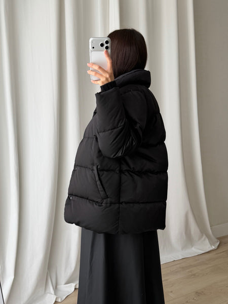 Moncler black down jacket.