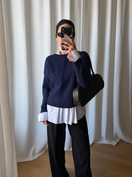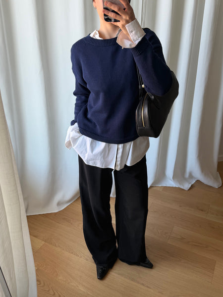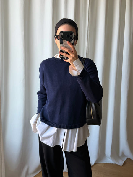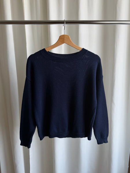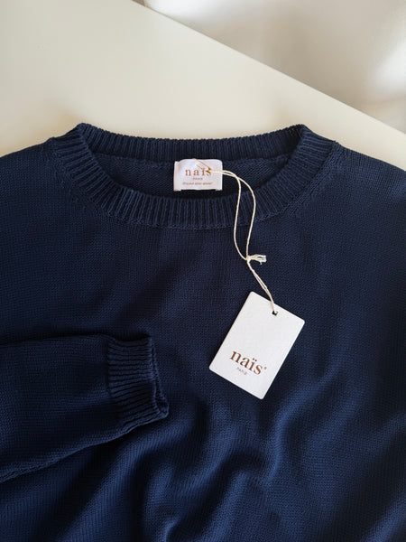 Maglioncino girocollo in puro cotone morbidissimo, colore blu intenso.