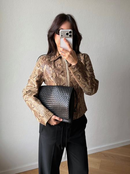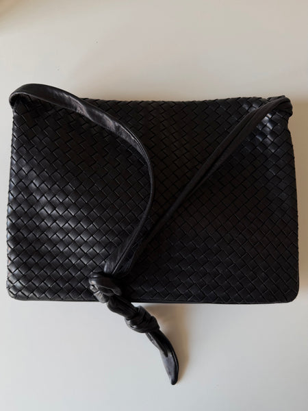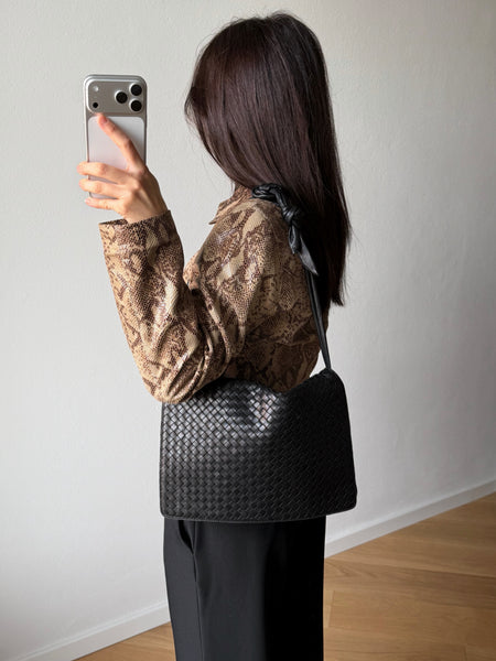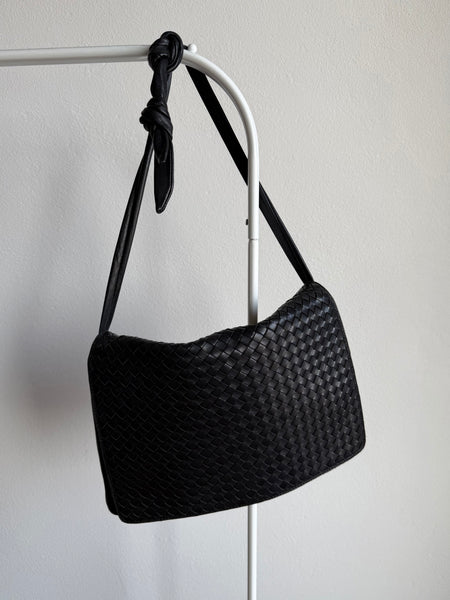 Real leather woven bag, black color.