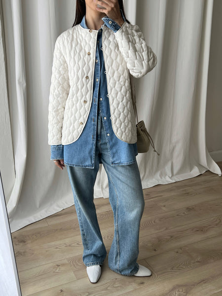 How to style: bellissima con un total denim look e borsa in camoscio, ma anche con un pantalone nero e t shirt bianca e gioielli oro, super classy e chic! Declinabile in mille modi diversi.